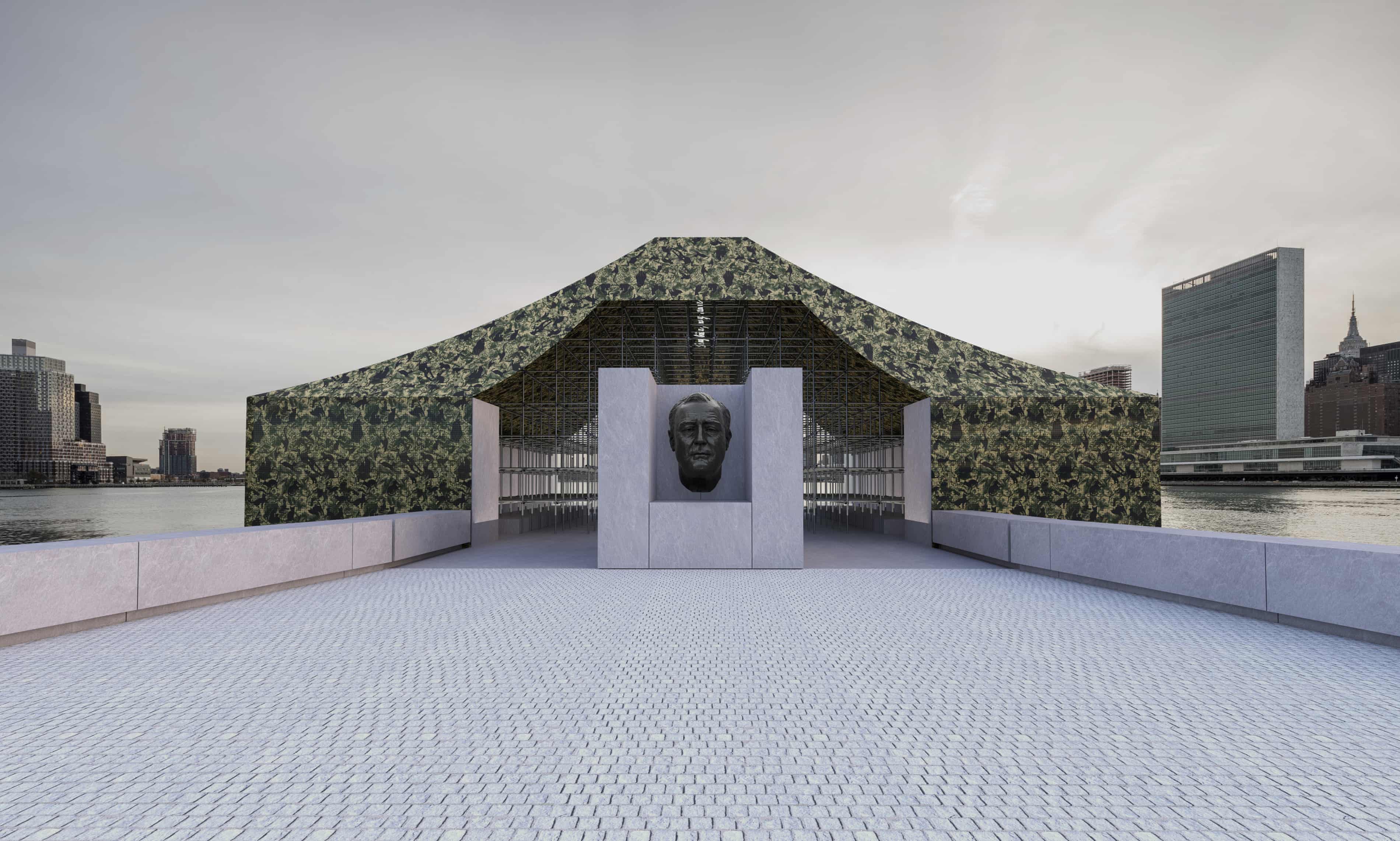 Ай Вэйвэй представит свою первую с 2017 года крупную публичную работу в Нью-Йорке – инсталляцию «Камуфляж» в парке Четырёх свобод. Проект, открывающийся 10 сентября в рамках Art X Freedom и приуроченный к 80-летию окончания Второй мировой войны, представляет собой покрытую маскировочной сеткой структуру, побуждающую к размышлениям о хрупкости, защите, правде и последствиях вооруженных конфликтов.